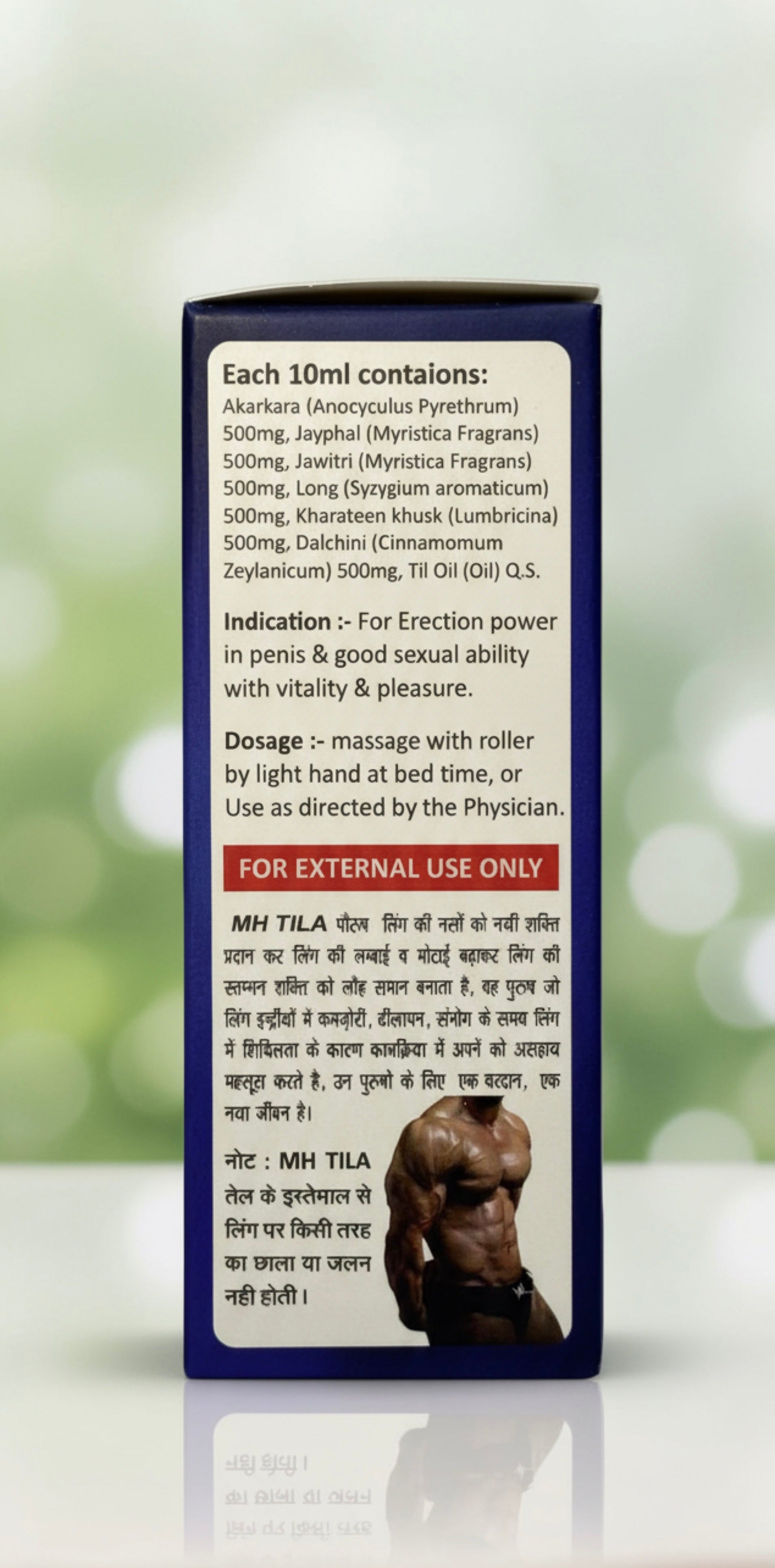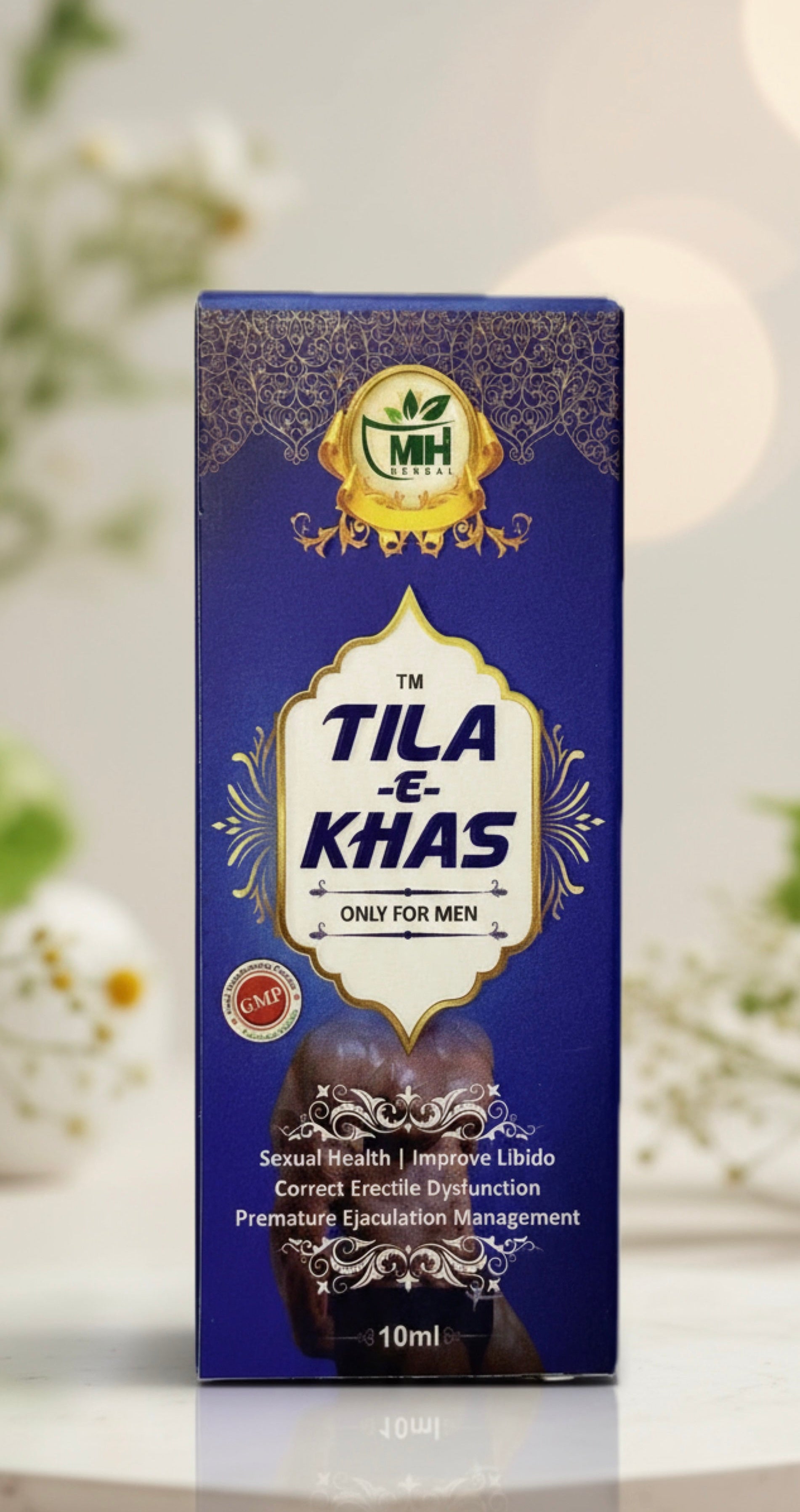 Tila-E-Khas is a specialized herbal massage oil formulated exclusively for men to support intimate wellness, boost vitality, and promote confidence. Made with traditional Ayurvedic ingredients, this oil helps stimulate circulation, enhance sensitivity, and support natural male performance when used regularly.